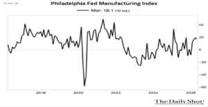 The Philadelphia Fed’s manufacturing index edged up…Coming in above the consensus forecast.